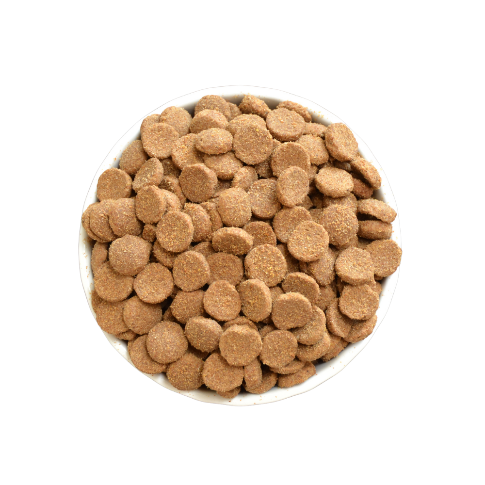 Céréales, viande et sous produits animaux (4% de volaille déshydratée), sous produits d’origine végétale, huiles et graisses, substances minérales.